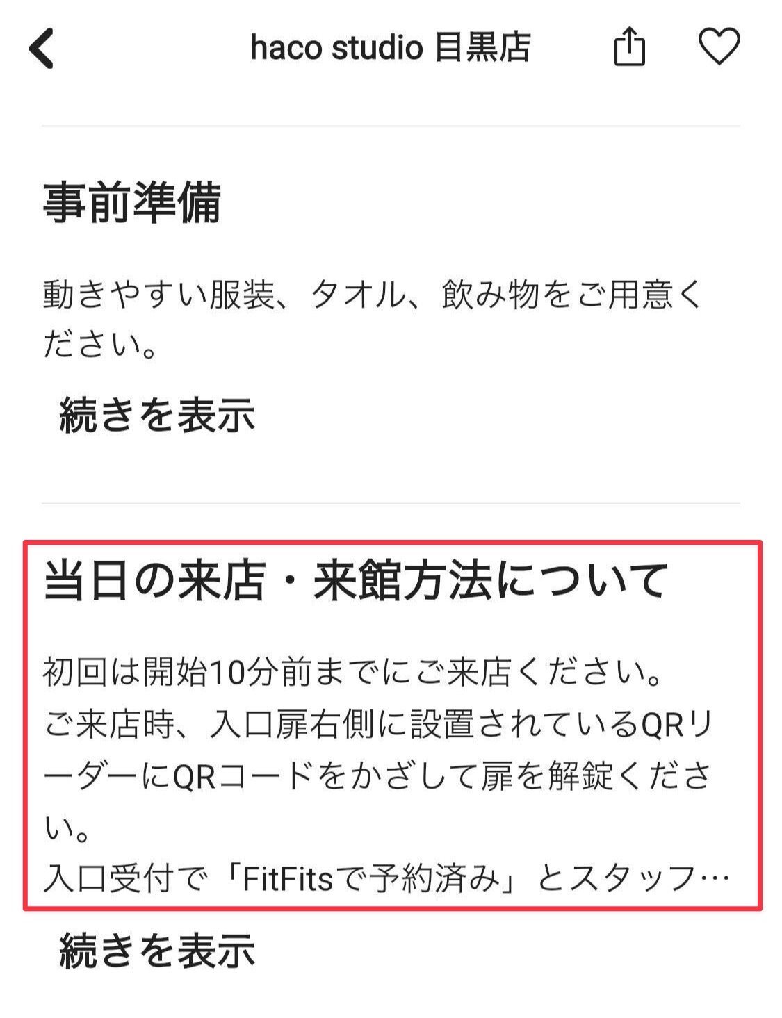 入館方法について、予約の詳細画面の[当日の来店・来館方法について]で説明されている場合がありますのでご確認ください。